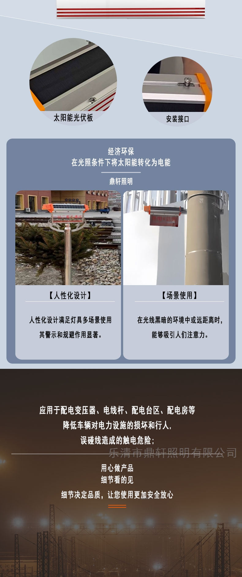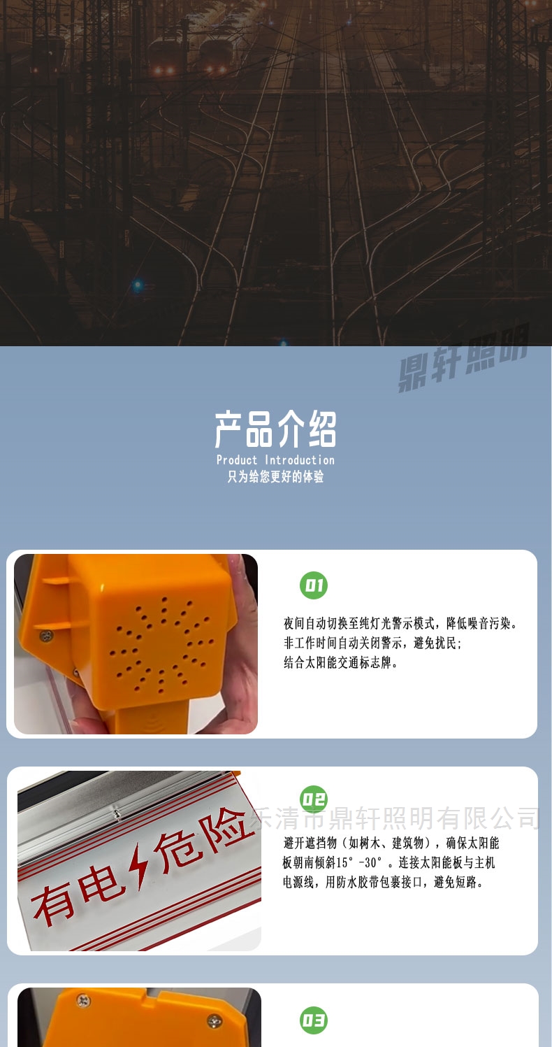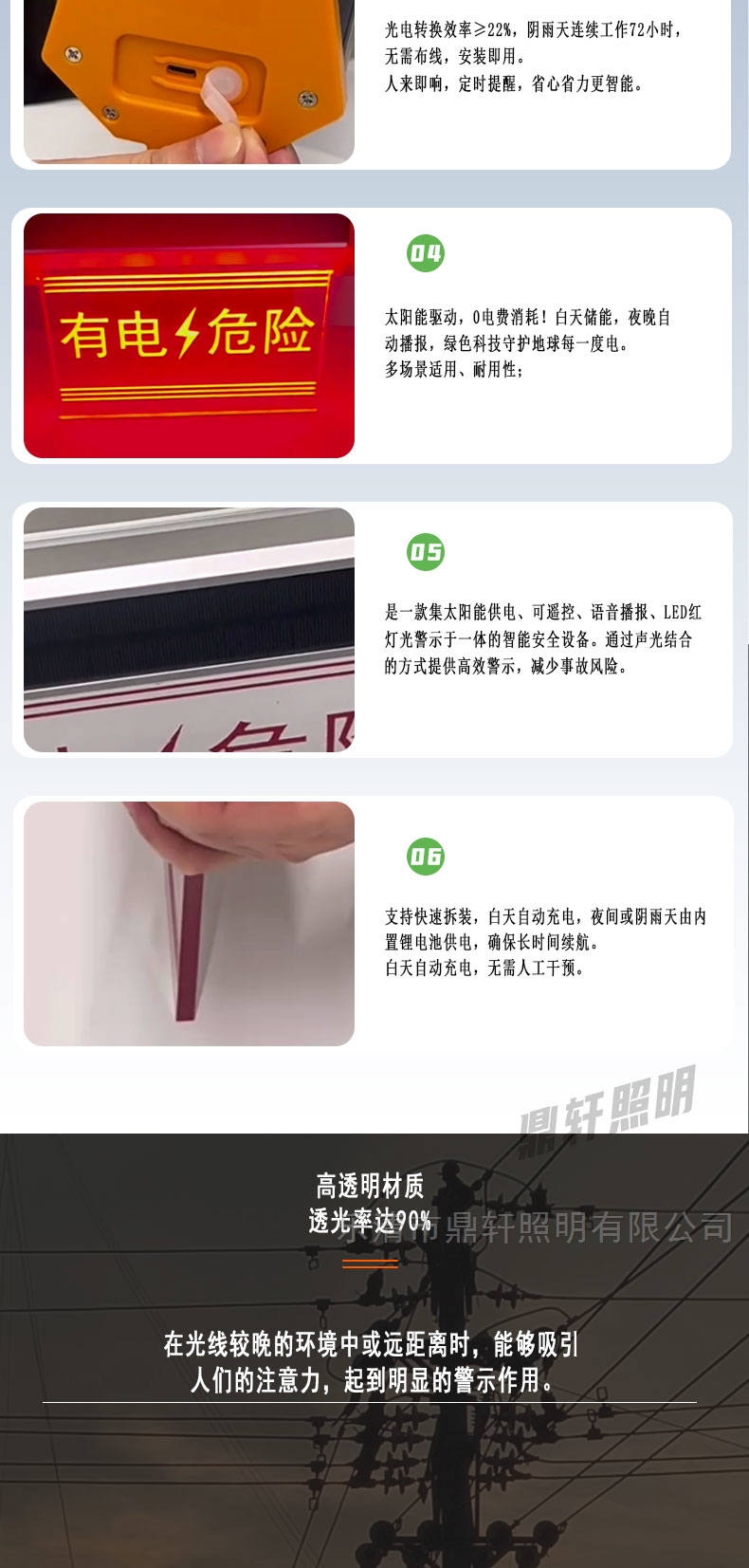 太陽能聲光閃燈警示牌鐵塔電桿電力語音播報
